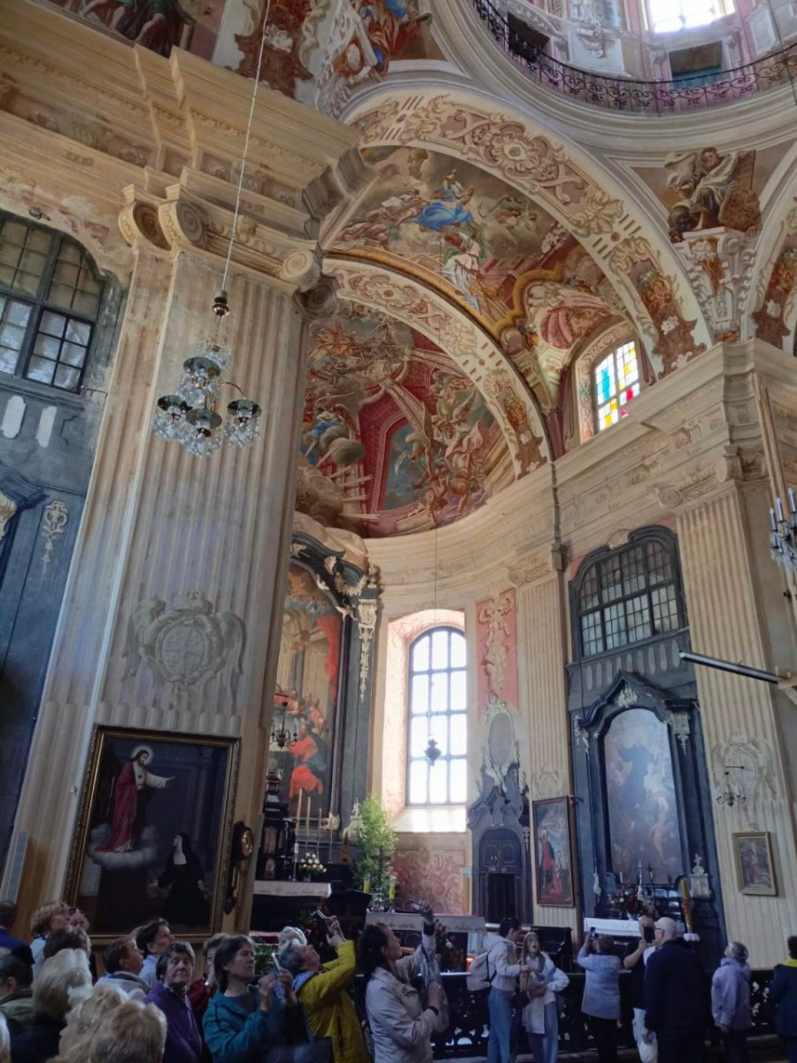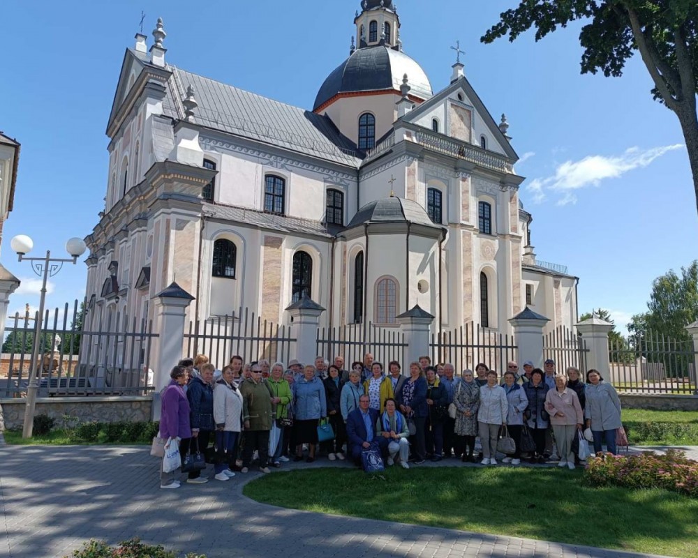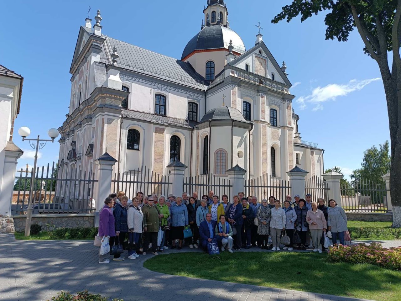 С хорошим настроением и…абсолютно не переживающими на счёт погоды 26 июня с личным сопровождением профсоюзного лидера предприятия Берозовика Александра Станиславовича отправились в Несвиж осматривать замок Радзивиллов. В начале любовались архитектурными переменами Минска, с гордостью выделяя наши МАПИДовские творения. Затем экскурсовод рассказывала о всех значимых населённых пунктах по пути нашего следования, автобусная обзорная по Несвижу (спасибо организаторам-учли возраст туристов) и вот мы у входа красивейшего костела. Фарный костел (Божьего Тела) поистине архитектурная жемчужина Несвижа.