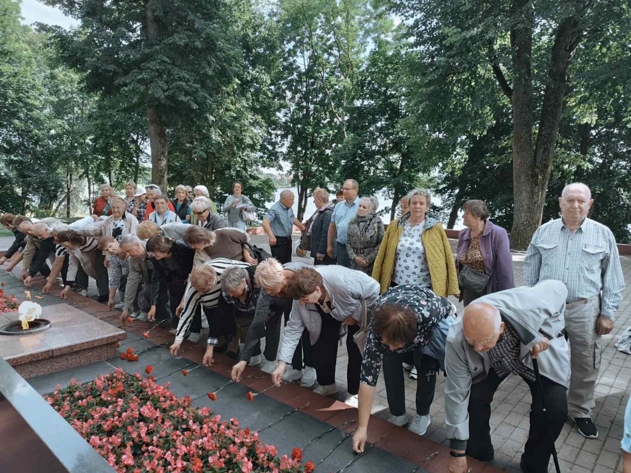 Рядом с замком была братская могила 135 воинов и партизан, которые погибли в боях против немецко-фашистских захватчиков в 1941-1944 годах. И конечно же вся наша группа с безграничной благодарностью почтила минутой молчания и возложила цветы к вечному огню в память о всех наших героических предках, благодаря которым мы можем сейчас наслаждаться жизнью в полной мере.