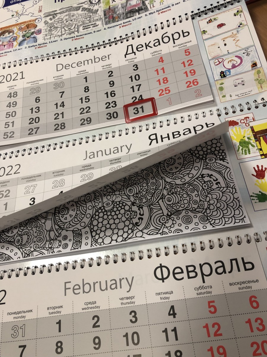 По итогам проекта «Шаг за шагом-2021» разработан корпоративный детский календарь . Ребенок не только сможет узнать дату и рассмотреть все работы участников конкурса, но и оторвать промежуточную страничку - раскраску-антистресс и раскрасить её вместе со свей семьей.