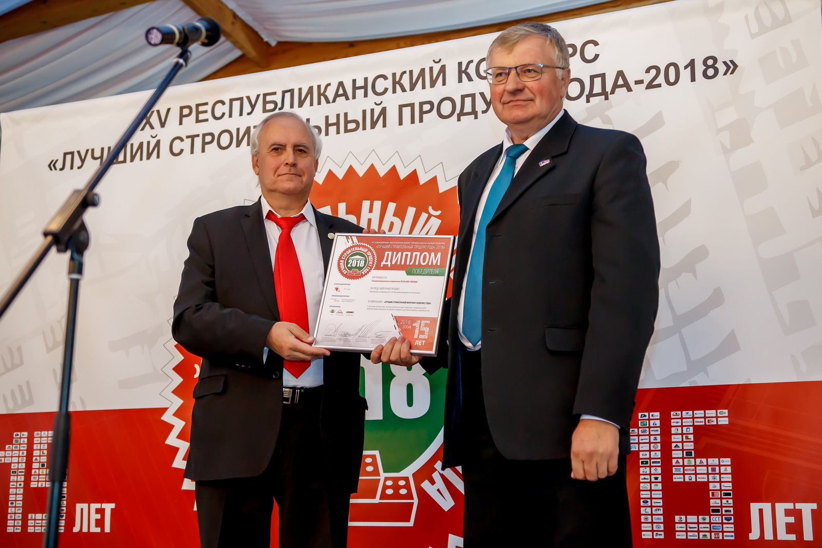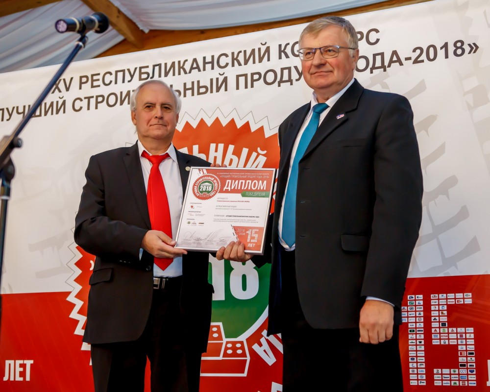 Звание победителя конкурса присуждено предприятию в номинации «Лучший строительный материал (изделие) года» за представленный продукт: «Шпатлевка полимерная В П 1 ПС (для механизированного нанесения)». По мнению членов жюри, единодушно проголосовавших за присуждение предприятию награды, данный продукт соответствует всем установленным на территории Беларуси требованиям в области качества, отвечает самым высоким требованиям потребителей.