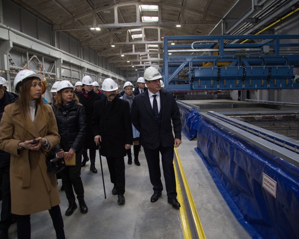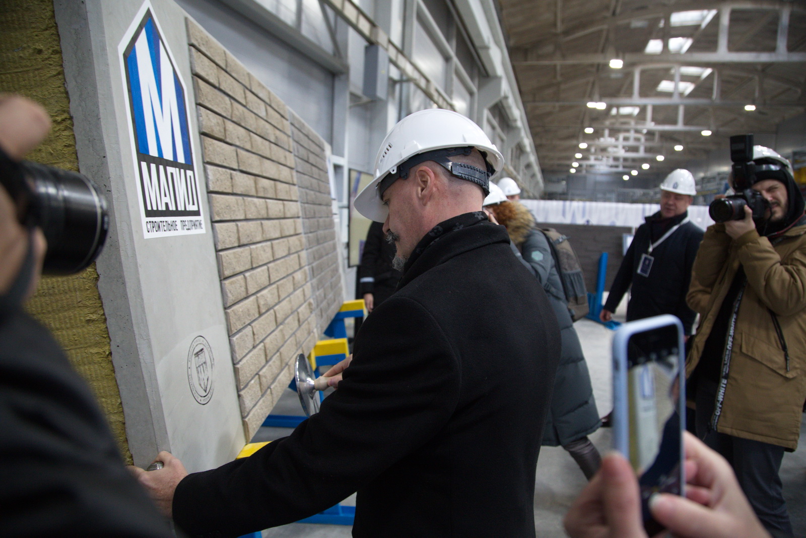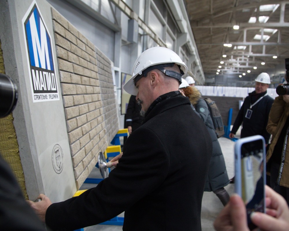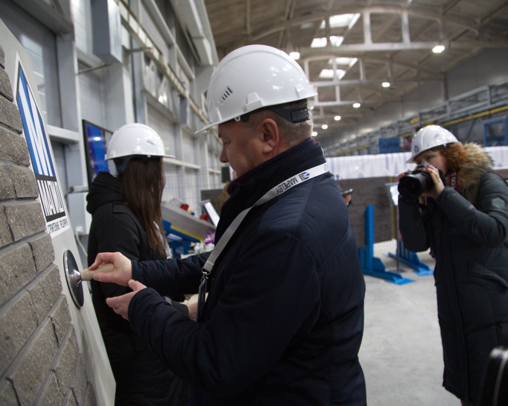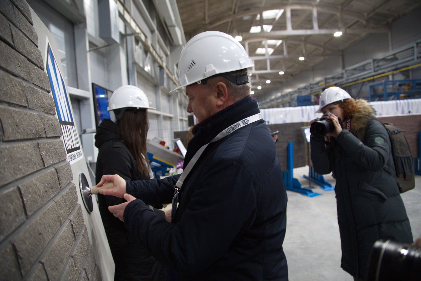 Кульминацией торжественной церемонии стало символическое нажатие кнопки пуска модернизированной линии, после чего гостям была представлена возможность ознакомиться с образцами наружных стеновых панелей нового поколения.